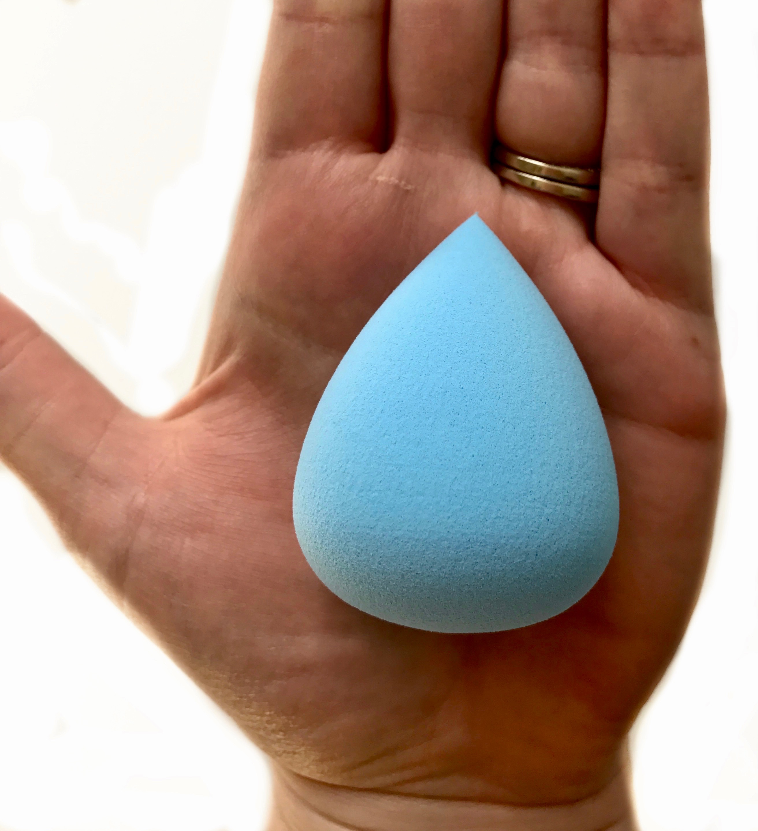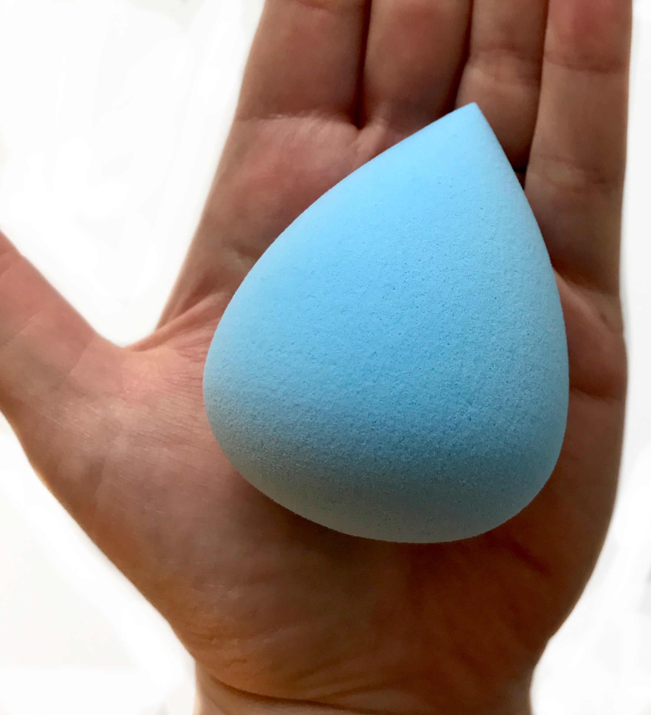 I picked up the blue sponge because I think it’s the only color makeup sponge I don’t already own. I knew this would make it easier for me to keep track of as it got absorbed into the collection of makeup sponges filling my bottom drawer. The shape of the sponge is well done. The top of the sponge comes to a very fine point which I find I really want for blending out concealer under my eyes. I don’t care for flat edges or more rounded surfaces.